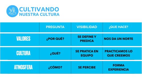- Nuestra cultura responde al "¿Qué?" hacemos para vivir esos valores.